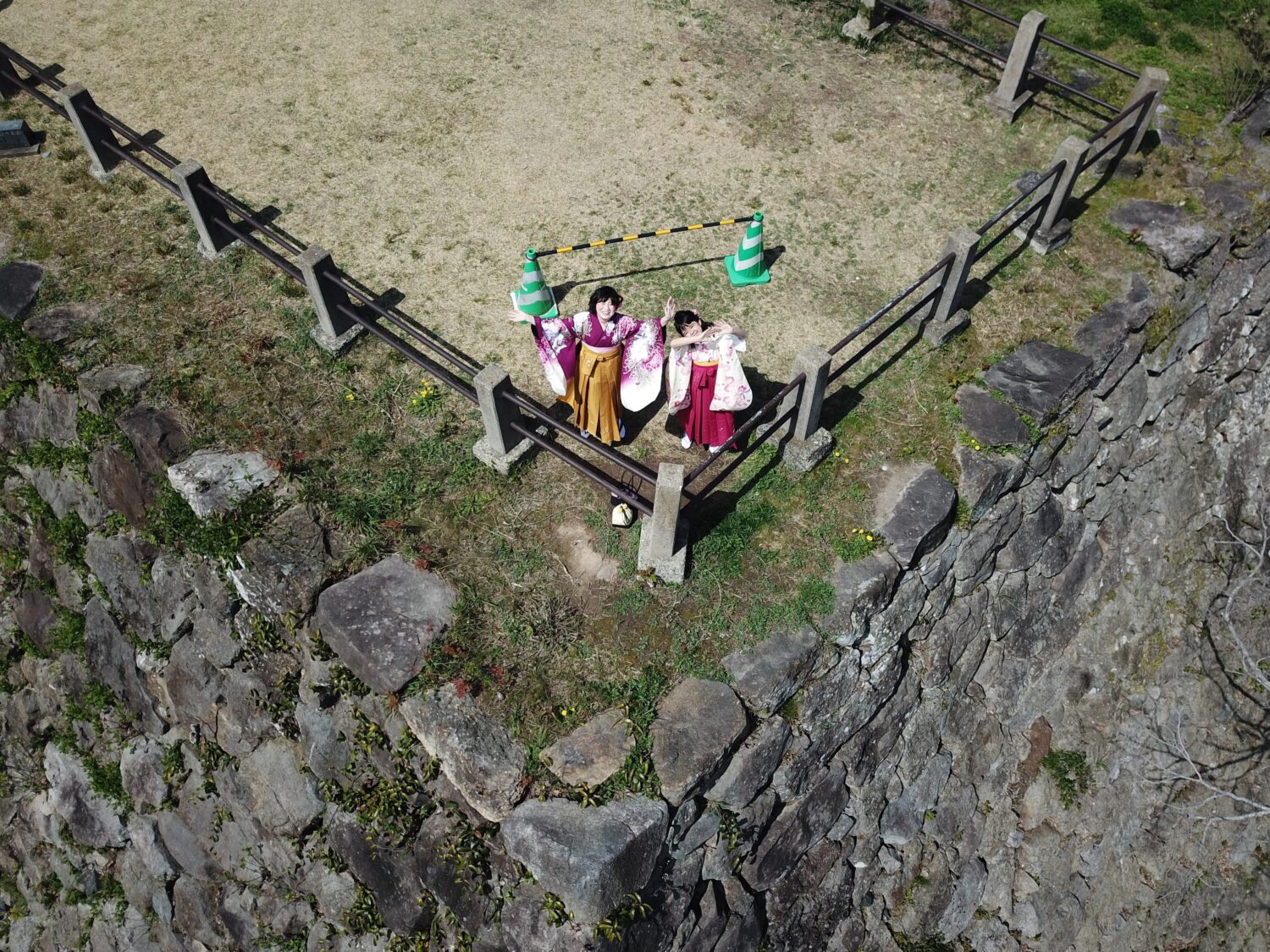 福岡城では、天守台跡での特別に許可を得たドローンでの記念撮影を行います。